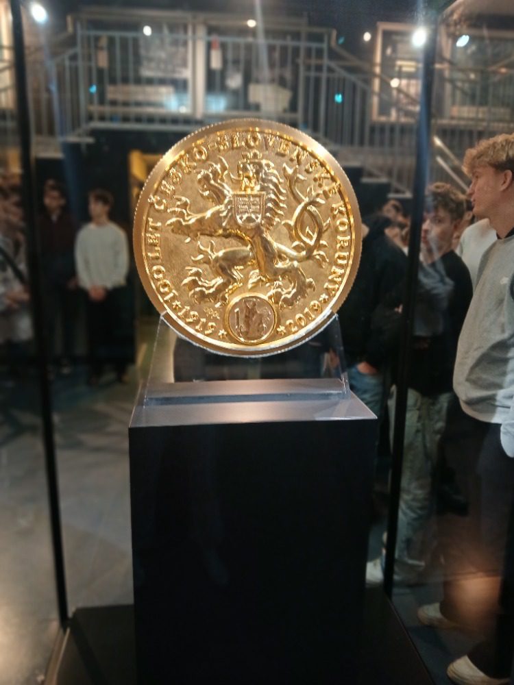 Zajímavou částí programu byla také prohlídka trezoru s ukázkami historických i současných bankovek a mincí, včetně vzácného zlatého 100kilogramového dukátu. Studenti si mohli vyzkoušet rozpoznávání ochranných prvků bankovek a dozvěděli se o způsobech, jak ČNB chrání českou měnu před paděláním.